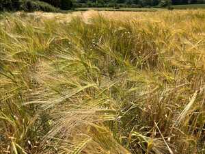 I love watching the air move across a field of wheat or barley.....gently blowing through the seed heads making them appear liquid, like the flow of the tides out to sea. A gentle ripple as the wind moves across the land.